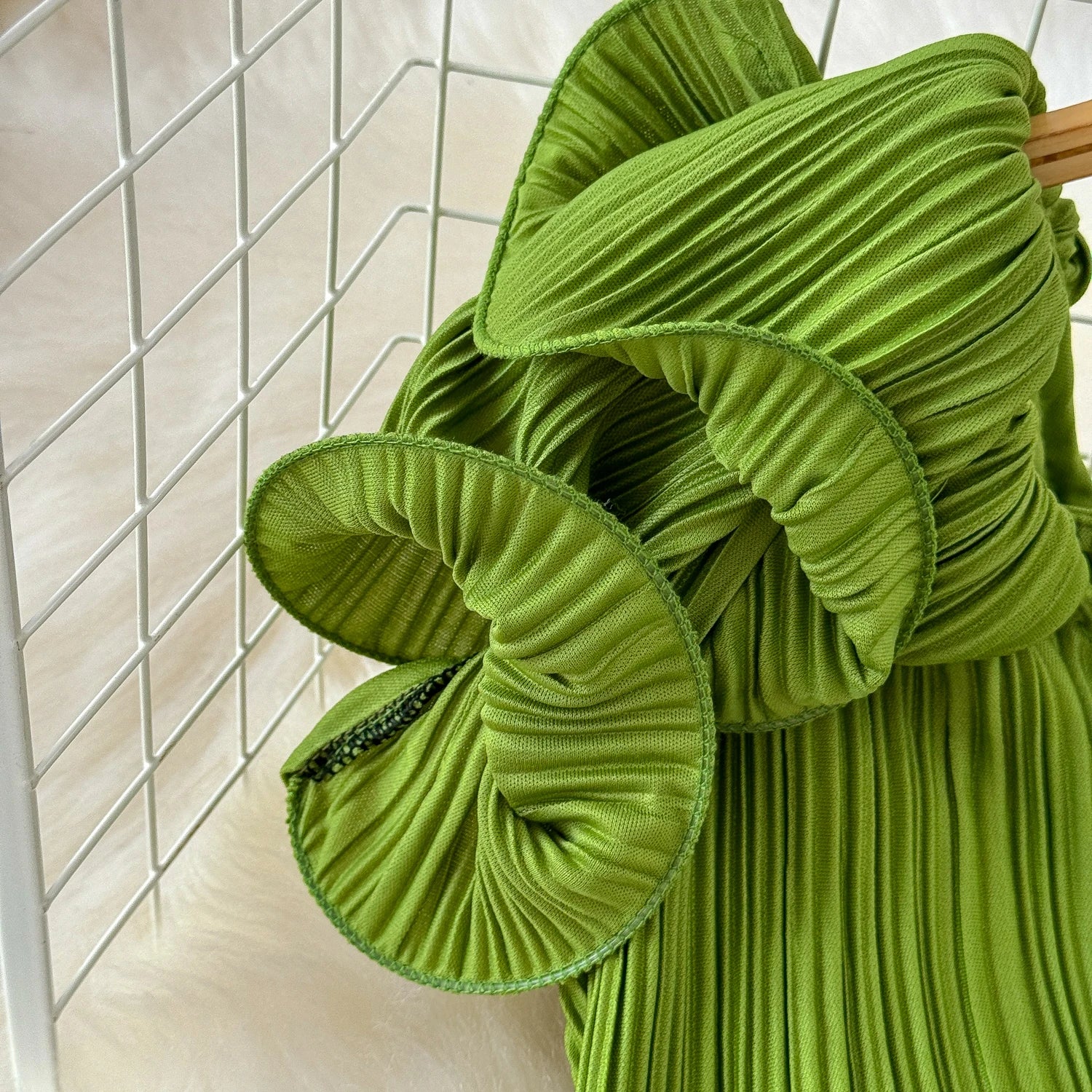 🍒Women's long dress slim fit occasion outfit with 3D pleats and ruffle hem sleeveless fashion wear party wear fashion clothing Look Smooth In Ruff-les