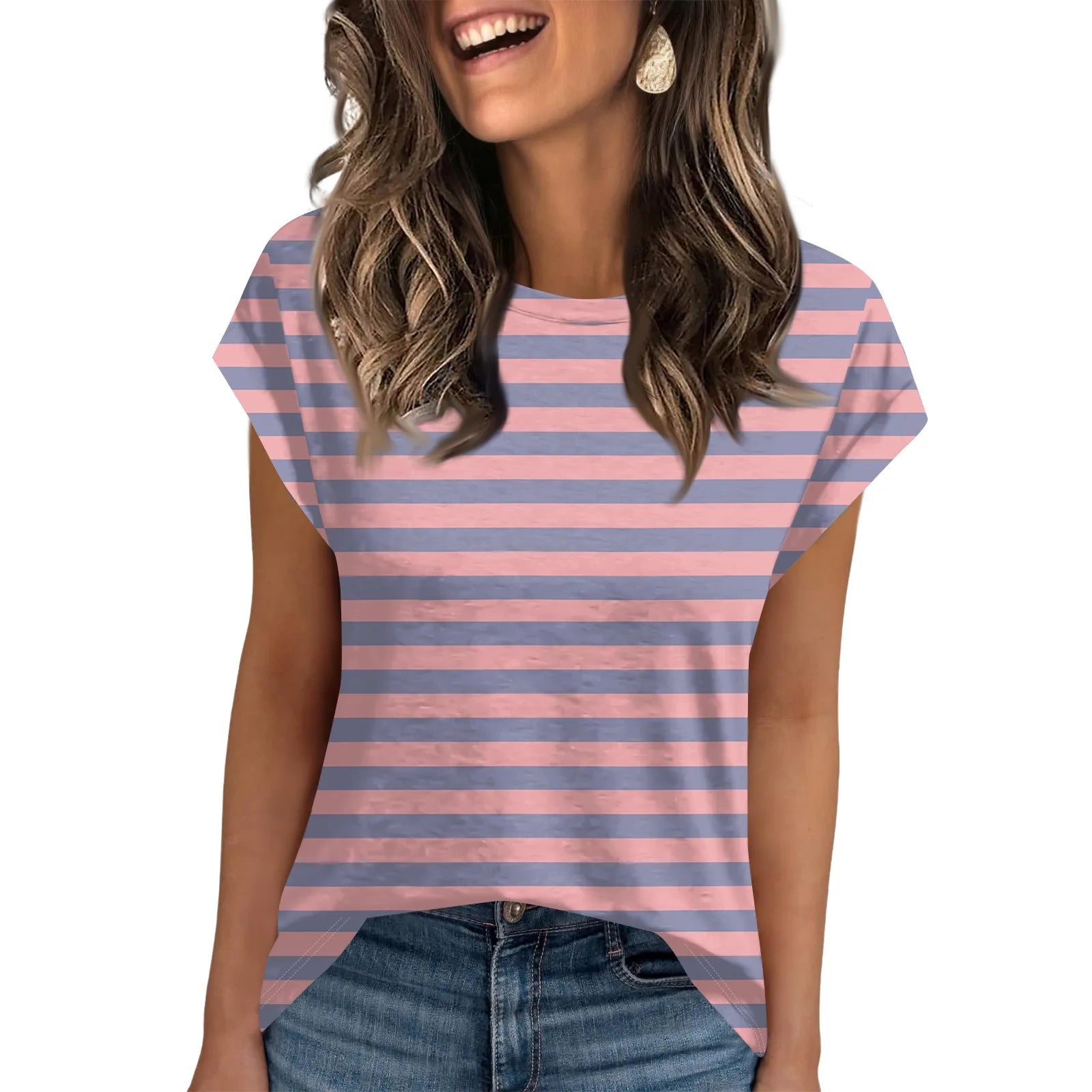 🍒Womens summer tops crop striped workout tee cap sleeve t-shirt to wear under jacket fashion trendy clothes