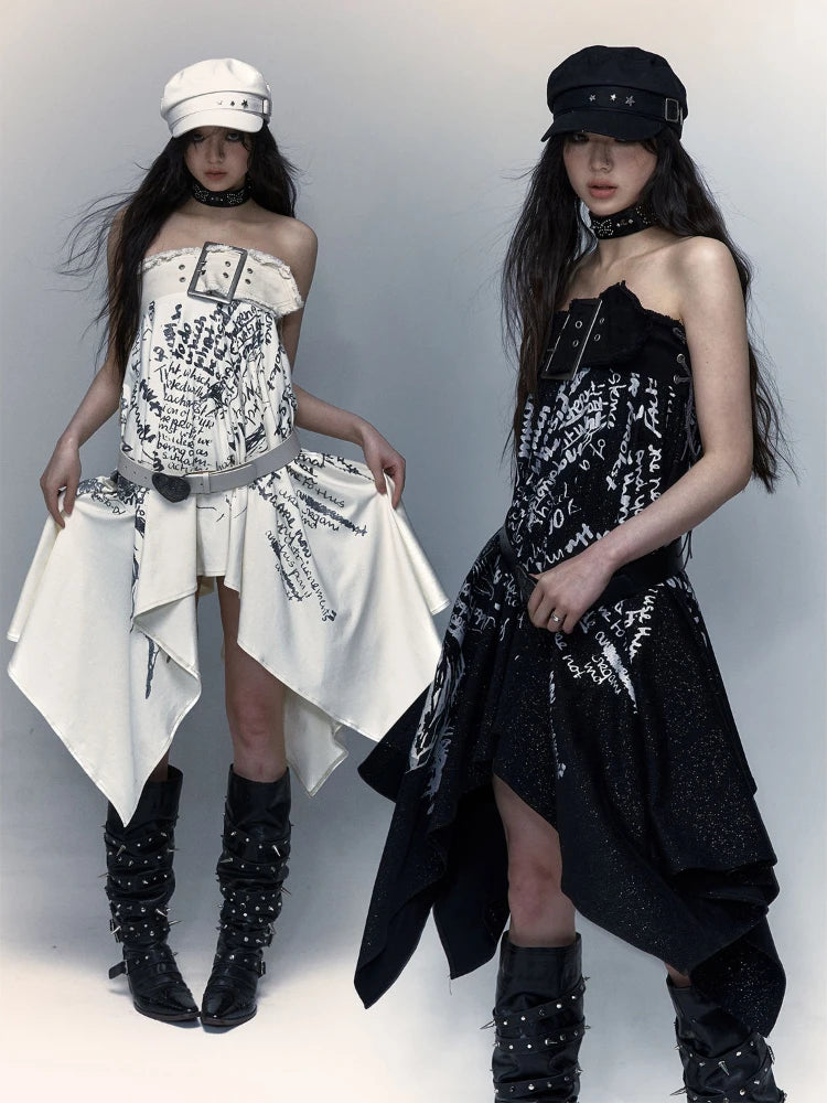 🍒Irregular letter print skirt shark bite skirt high waist long for women's y2k aesthetic vintage fashion streetwear Word On The Street These Are Cool Clothes