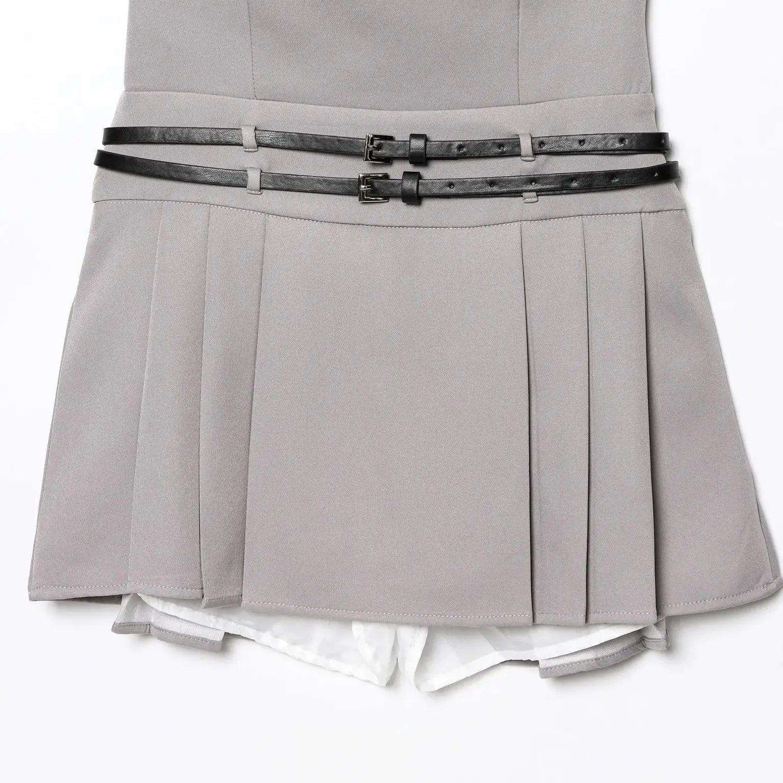 🍒Women's pleated mini dress backless square neck design with belts spaghetti straps low waist solid colour summer chic clothes party occasion wear Bag A Bargin Backless