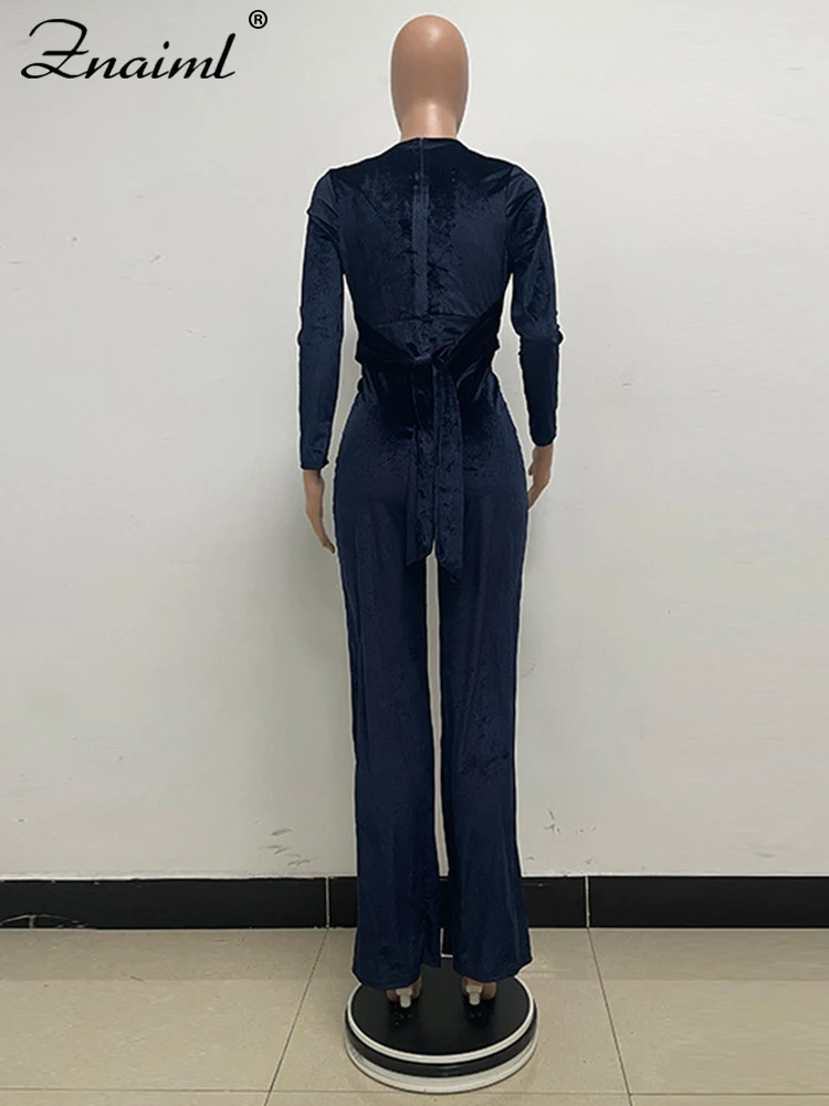 🍒 Velvet jumpsuit black and colours women's autumn winter v- neck jumpsuit outfit solid colour long flare leg one piece office lady clothing
